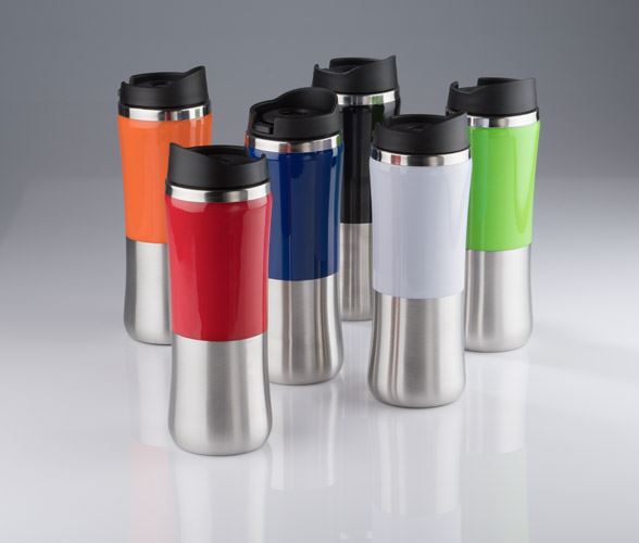 O cana eleganta de calatorie cu o capacitate de 350 ml. Corpul este din otel si plastic, dar interiorul este complet din otel. Aceasta cana are fundul antiderapant. Incuietoarea pentru cana are doua avantaje principale – asigura un nivel ridicat de etansare si poate fi operat cu o singura mana. Mentine temperatura pana la 4 ore. Personalizare se poate realiza atat pe elemente din plastic, cat si din metal