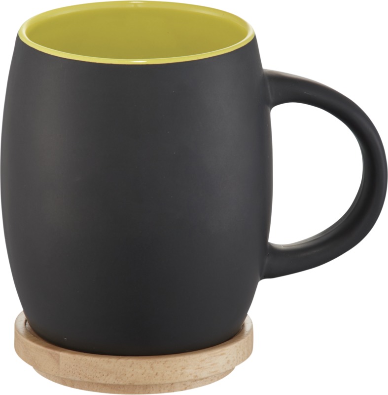 O cană ceramică Hearth 400 ml cu coaster/capac din lemn. Cană cu finisaj mat. Capacul din lemn natural funcționează, de asemenea, ca un coaster. Capacitate: 400 ml. Se livrează într-o cutie cadou. Ceramică. Dimensiune: 10,4×7,5cm.