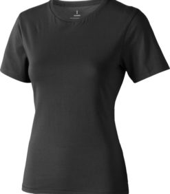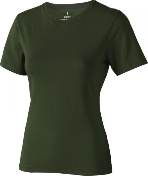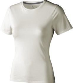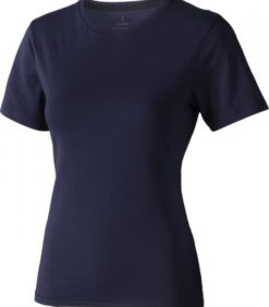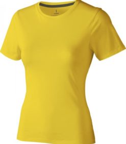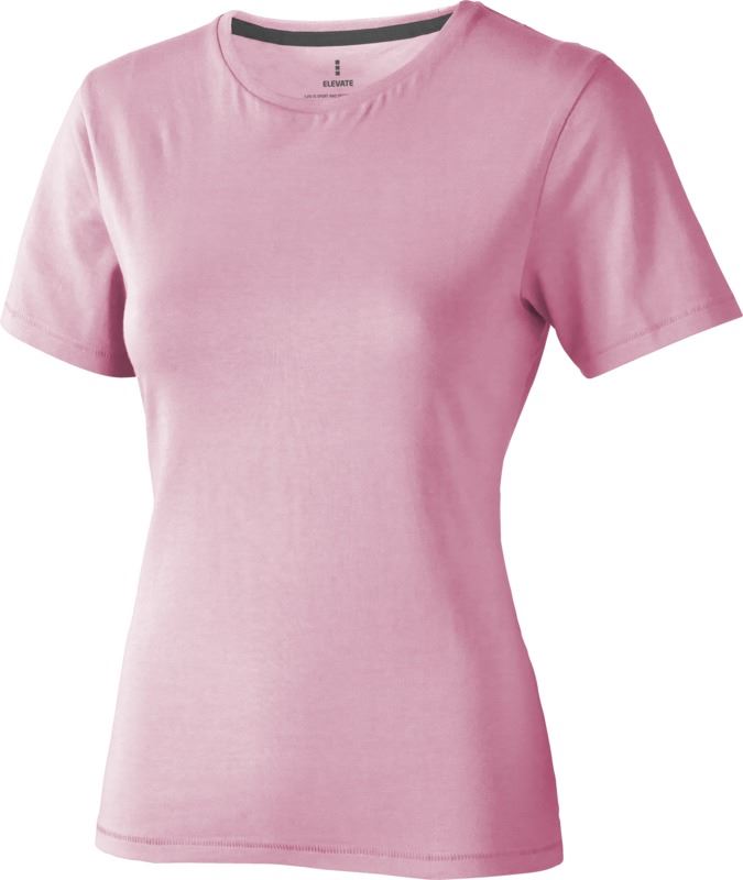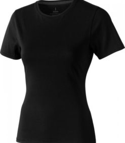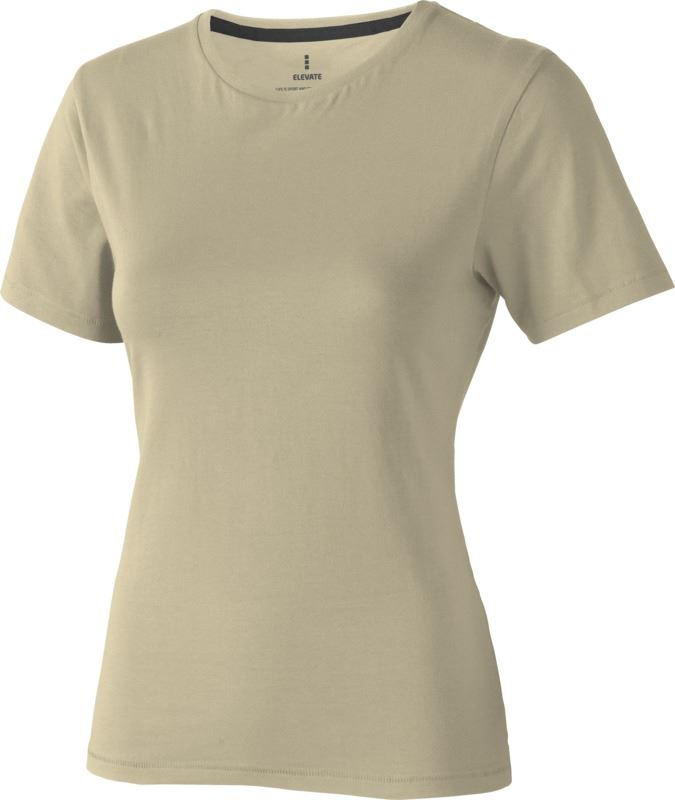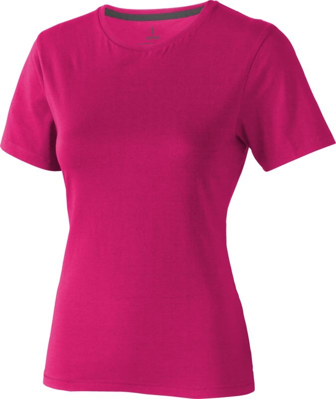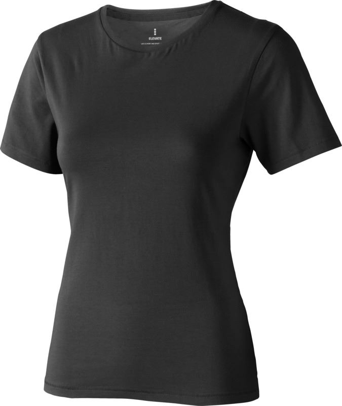 Tricou pentru femei cu maneca scurta Nanaimo. Guler din tricot. Detalii de tip Pick-Stitch. Banda din umar pana la umar. Tricou din bumbac pieptanat 100%. 160 g/mp.